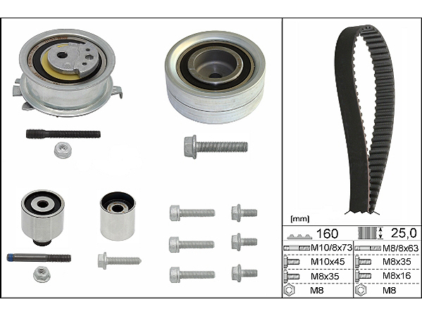 SET ZUPČASTOG KAIŠA 530055010 ZA VW, AUDI, ŠKODU I SEAT Sadrži: 536035610 Kaiš 531082510 Španer 532016110 Roler OE BROJEVI 03L 198 119 A 03L 198 119 B 03L 198 119 C 03L 198 119 D Primena AUDI AUDI A3 Hatchback (8P1) (Year of Construction 05.2003 – 08.2012, 90 – 170 PS, Diesel) AUDI A3 Sportback (8PA) (Year of Construction 09.2004 – 03.2013, 90 – 170 PS, Diesel) AUDI TT Coupe (8J3) (Year of Construction 06.2008 – 06.2014, 170 PS, Diesel) AUDI TT Roadster (8J9) (Year of Construction 06.2008 – 06.2014, 170 PS, Diesel) AUDI A5 B8 Coupe (8T3) (Year of Construction 08.2008 – 01.2017, 163 – 177 PS, Diesel) AUDI A4 B8 Saloon (8K2) (Year of Construction 11.2007 – 12.2015, 120 – 177 PS, Diesel) AUDI A3 Convertible (8P7) (Year of Construction 04.2008 – 05.2013, 105 – 140 PS, Diesel) AUDI A4 B8 Avant (8K5) (Year of Construction 04.2008 – 12.2015, 120 – 177 PS, Diesel) AUDI Q5 (8RB) (Year of Construction 11.2008 – 05.2017, 136 – 177 PS, Diesel) AUDI A5 B8 Convertible (8F7) (Year of Construction 05.2009 – 01.2017, 143 – 177 PS, Diesel) AUDI A4 B8 Allroad (8KH) (Year of Construction 04.2009 – 05.2016, 136 – 177 PS, Diesel) AUDI A5 B8 Sportback (8TA) (Year of Construction 09.2009 – 01.2017, 136 – 177 PS, Diesel) AUDI A1 Hatchback (8X1, 8XK) (Year of Construction 05.2010 – 04.2015, 90 – 143 PS, Diesel) AUDI A6 C7 Saloon (4G2, 4GC) (Year of Construction 03.2011 – 09.2018, 136 – 177 PS, Diesel) AUDI A6 C7 Avant (4G5, 4GD) (Year of Construction 05.2011 – 09.2018, 136 – 177 PS, Diesel) AUDI A1 Sportback (8XA, 8XK) (Year of Construction 09.2011 – 04.2015, 90 – 143 PS, Diesel) AUDI Q3 (8UB, 8UG) (Year of Construction 06.2011 – 10.2018, 136 – 177 PS, Diesel) VW VW Touran I (1T1, 1T2) (Year of Construction 12.2005 – 05.2010, 170 PS, Diesel) VW Multivan T5 (7HM, 7HN, 7HF, 7EF, 7EM, 7EN) (Year of Construction 09.2009 – 08.2015, 84 – 180 PS, Diesel) VW Transporter T5 Platform / Chassis (7JD, 7JE, 7JL, 7JY, 7JZ, 7FD) (Year of Construction 09.2009 – 08.2015, 84 – 180 PS, Diesel) VW Transporter T5 Van (7HA, 7HH, 7EA, 7EH) (Year of Construction 09.2009 – 08.2015, 84 – 180 PS, Diesel) VW Transporter T5 Minibus (7HB, 7HJ, 7EB, 7EJ, 7EF, 7EG, 7HF, 7EC) (Year of Construction 09.2009 – 08.2015, 84 – 180 PS, Diesel) VW Caddy III Van (2KA, 2KH, 2CA, 2CH) (Year of Construction 08.2010 – 05.2015, 75 – 170 PS, Diesel) VW Caddy III Estate (2KB, 2KJ, 2CB, 2CJ) (Year of Construction 08.2010 – 05.2015, 75 – 170 PS, Diesel) VW Golf Plus / Crossgolf (5M1, 521) (Year of Construction 01.2005 – 12.2013, 90 – 140 PS, Diesel) VW Passat B6 Saloon (3C2) (Year of Construction 08.2009 – 07.2010, 105 PS, Diesel) VW Jetta Mk5 (1K) (Year of Construction 06.2009 – 10.2010, 90 – 105 PS, Diesel) VW Passat B6 Variant (3C5) (Year of Construction 08.2009 – 11.2010, 105 PS, Diesel) VW Eos (1F7, 1F8) (Year of Construction 05.2008 – 08.2015, 136 – 140 PS, Diesel) VW Crafter 30-35 Minibus (2E) (Year of Construction 05.2011 – 12.2016, 109 – 163 PS, Diesel) VW Crafter 30-50 Van (2E) (Year of Construction 05.2011 – 12.2016, 109 – 163 PS, Diesel) VW Crafter 30-50 Platform/Chassis (2F) (Year of Construction 05.2011 – 12.2016, 109 – 163 PS, Diesel) VW Tiguan I (5N) (Year of Construction 09.2007 – 07.2018, 110 – 177 PS, Diesel) VW Passat CC (357) (Year of Construction 06.2008 – 01.2012, 136 – 170 PS, Diesel) VW Scirocco III (137, 138) (Year of Construction 08.2008 – 11.2017, 136 – 177 PS, Diesel) VW Golf VI Hatchback (5K1) (Year of Construction 10.2008 – 05.2013, 90 – 170 PS, Diesel) VW Polo V Hatchback (6R1, 6C1) (Year of Construction 06.2009 – …, 75 – 105 PS, Diesel) VW Golf VI Variant (AJ5) (Year of Construction 07.2009 – 07.2013, 90 – 140 PS, Diesel) VW Sharan II (7N1, 7N2) (Year of Construction 05.2010 – …, 116 – 177 PS, Diesel) VW Amarok Pickup (2HA, 2HB, S1B, S6B, S7A, S7B) (Year of Construction 09.2010 – …, 122 – 180 PS, Diesel) VW Passat B7 Saloon (362) (Year of Construction 08.2010 – 12.2014, 105 – 177 PS, Diesel) VW Passat B7 Variant (365) (Year of Construction 08.2010 – 12.2014, 105 – 177 PS, Diesel) VW Jetta Mk6 (162, 163, AV3, AV2) (Year of Construction 04.2010 – …, 105 – 140 PS, Diesel) VW Golf VI Convertible (517) (Year of Construction 03.2011 – 05.2016, 105 – 140 PS, Diesel) VW Beetle Hatchback (5C1, 5C2) (Year of Construction 04.2011 – 07.2016, 105 – 140 PS, Diesel) VW Polo V Saloon (602, 604, 612, 614) (Year of Construction 07.2010 – …, 105 – 110 PS, Diesel) VW CC (358) (Year of Construction 11.2011 – 12.2016, 136 – 177 PS, Diesel) VW Touran I (1T3) (Year of Construction 05.2010 – 05.2015, 90 – 177 PS, Diesel) VW Beetle Convertible (5C7, 5C8) (Year of Construction 12.2011 – 07.2016, 105 – 140 PS, Diesel) VW Passat B7 Alltrack (365) (Year of Construction 01.2012 – 12.2014, 140 – 177 PS, Diesel) VW Passat NMS (A32, A33) (Year of Construction 04.2011 – 06.2015, 141 PS, Diesel) VW Amarok Platform / Chassis (S1B, S6B, S7B) (Year of Construction 09.2011 – 10.2016, 140 PS, Diesel) VW Caddy IV Kombi (SAB, SAJ) (Year of Construction 05.2015 – …, 75 – 140 PS, Diesel) VW Caddy IV Van (SAA, SAH) (Year of Construction 05.2015 – …, 75 – 140 PS, Diesel) VW Multivan T6 (SGF, SGM, SGN) (Year of Construction 04.2015 – …, 102 – 180 PS, Diesel) VW Transporter T6 Minibus (SGB, SGG, SGJ) (Year of Construction 04.2015 – …, 84 – 180 PS, Diesel) VW Transporter T6 Van (SGA, SGH) (Year of Construction 04.2015 – …, 84 – 180 PS, Diesel) VW Transporter T6 Platform / Chassis (SFD, SFE, SFL, SFZ) (Year of Construction 04.2015 – …, 84 – 180 PS, Diesel) VW Caddy Alltrack IV Kombi (SAB) (Year of Construction 05.2015 – …, 75 – 102 PS, Diesel) VW Caddy Alltrack IV Van (SAA) (Year of Construction 05.2015 – …, 75 – 102 PS, Diesel) VW Passat B7 Box Body / Estate (365) (Year of Construction 08.2010 – 12.2014, 105 PS, Diesel) VW C